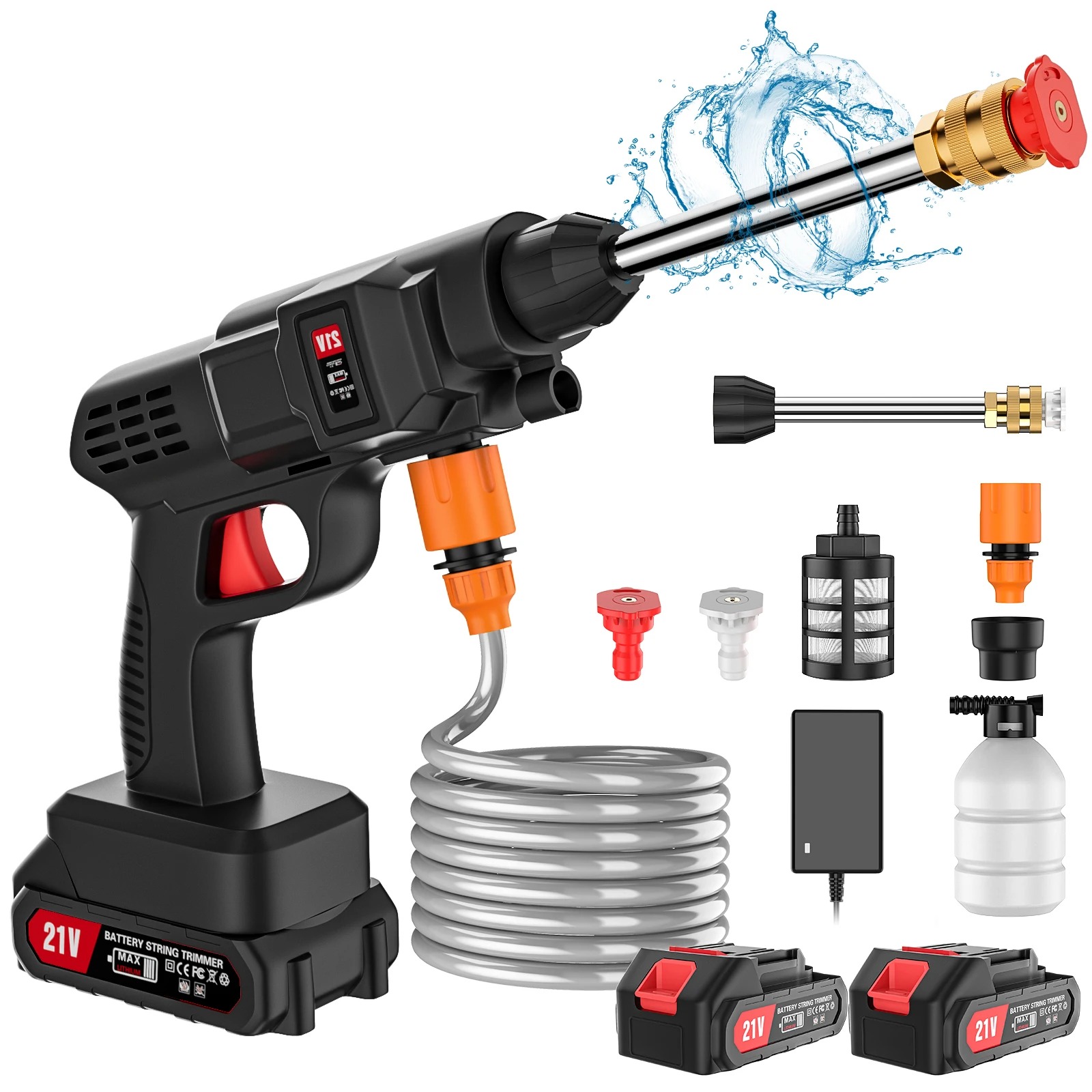 Akumulatorowa Myjka Ciśnieniowa 21V 300W | Przenośny Pistolet do Mycia Auta i Ogrodu | Zestaw z 2x Akumulatorem