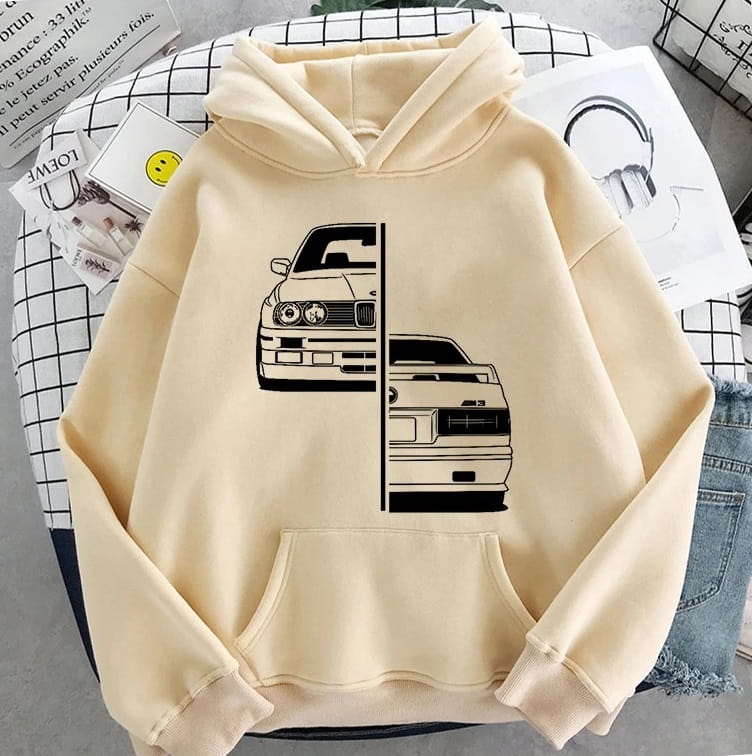 Wprowadź do swojej garderoby odrobinę motoryzacyjnego kultu! Ta bluza z kapturem to idealny wybór dla każdego fana klasycznego tuningu i legendy, jaką jest BMW M3. Łączy w sobie luźny, streetwearowy styl z pasją do motoryzacji.