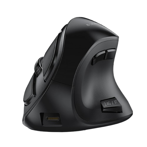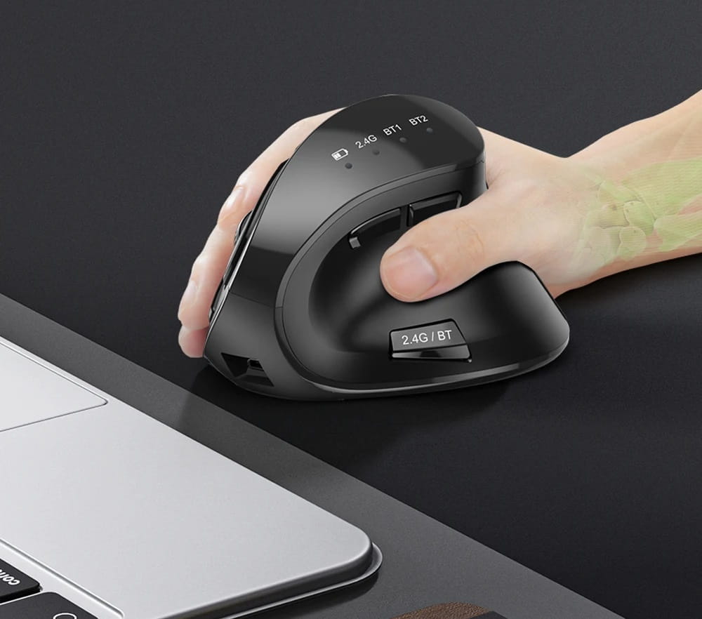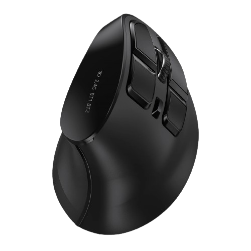 Czarna mysz bezprzewodowa o ergonomicznym kształcie została zaprojektowana tak, aby zmniejszyć napięcie mięśni i zapobiec zmęczeniu podczas długich godzin pracy przy komputerze.