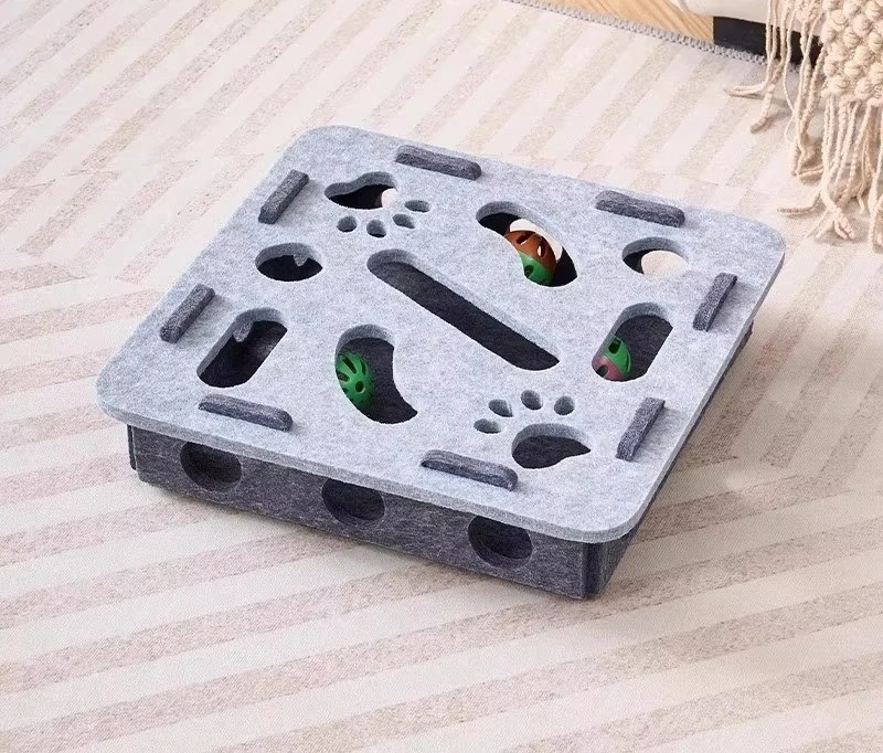 Interaktywna Skrzynia Zabaw dla Kota – Drewniana Mata Edukacyjna z Piłeczkami, 30x30 cm