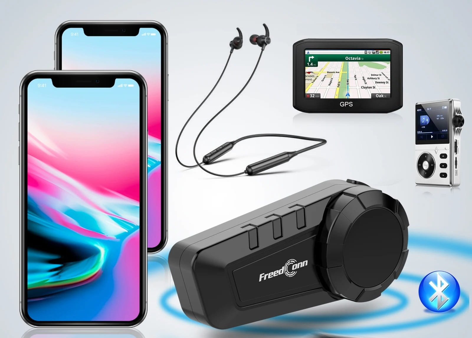 Wysoka kompatybilność: Łatwo podłącz urządzenie do 2 telefonów, odtwarzaczy MP3/GPS i innych urządzeń Bluetooth. Bądź w kontakcie, słuchaj muzyki i korzystaj z nawigacji bez żadnych przeszkód.