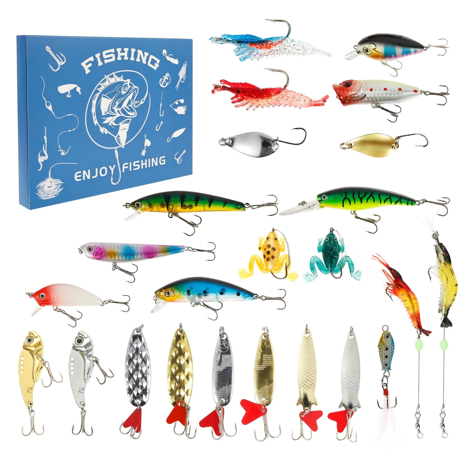 Zestaw zawiera aż 24 unikatowe przynęty, idealny prezent dla pasjonatów wędkowania!