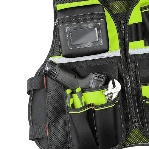 Zwiększ swoją produktywność i komfort pracy dzięki naszej wielofunkcyjnej kamizelce monterskiej. Ta wytrzymała i praktyczna kamizelka została zaprojektowana, aby pomóc Ci utrzymać wszystkie niezbędne narzędzia i akcesoria w zasięgu ręki.