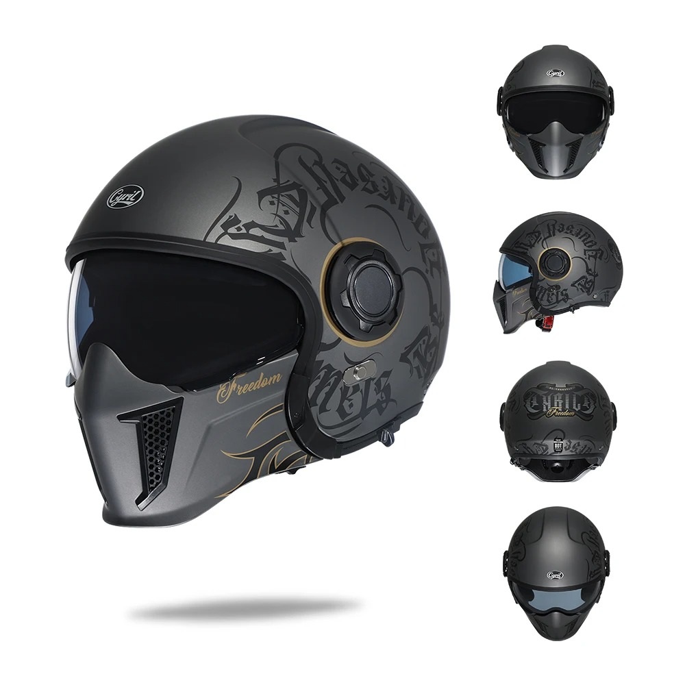 • Wielofunkcyjność 4w1: Swobodnie przełączaj się między pełnym kaskiem, kaskiem z maską, półkaskiem oraz stylem retro. Idealny wybór na każdą porę roku.