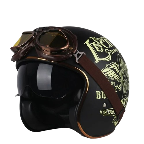 • Kompletny zestaw: Do każdego kasku dołączone są stylowe gogle retro, które chronią oczy przed wiatrem i kurzem, dopełniając klasyczny wygląd.
