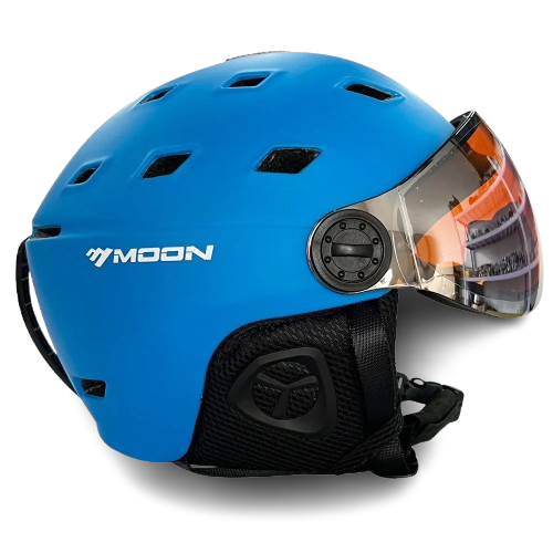 Kask do sportów zimowych z wentylacją oraz osłoną przeciwsłoneczną