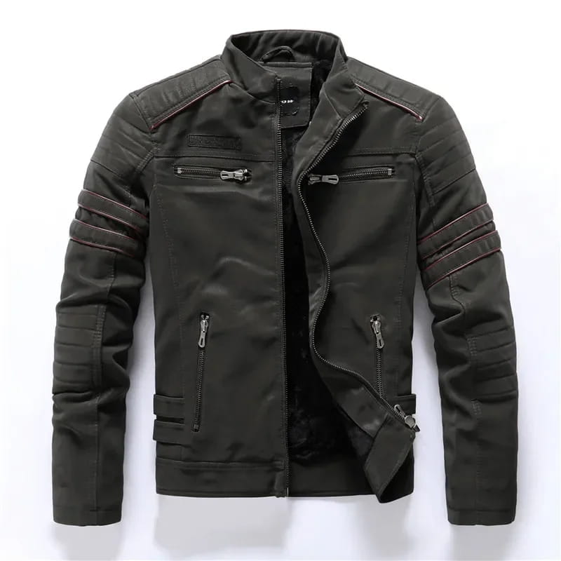 Męska Grafitowa Skórzana Kurtka Motocyklowa Biker