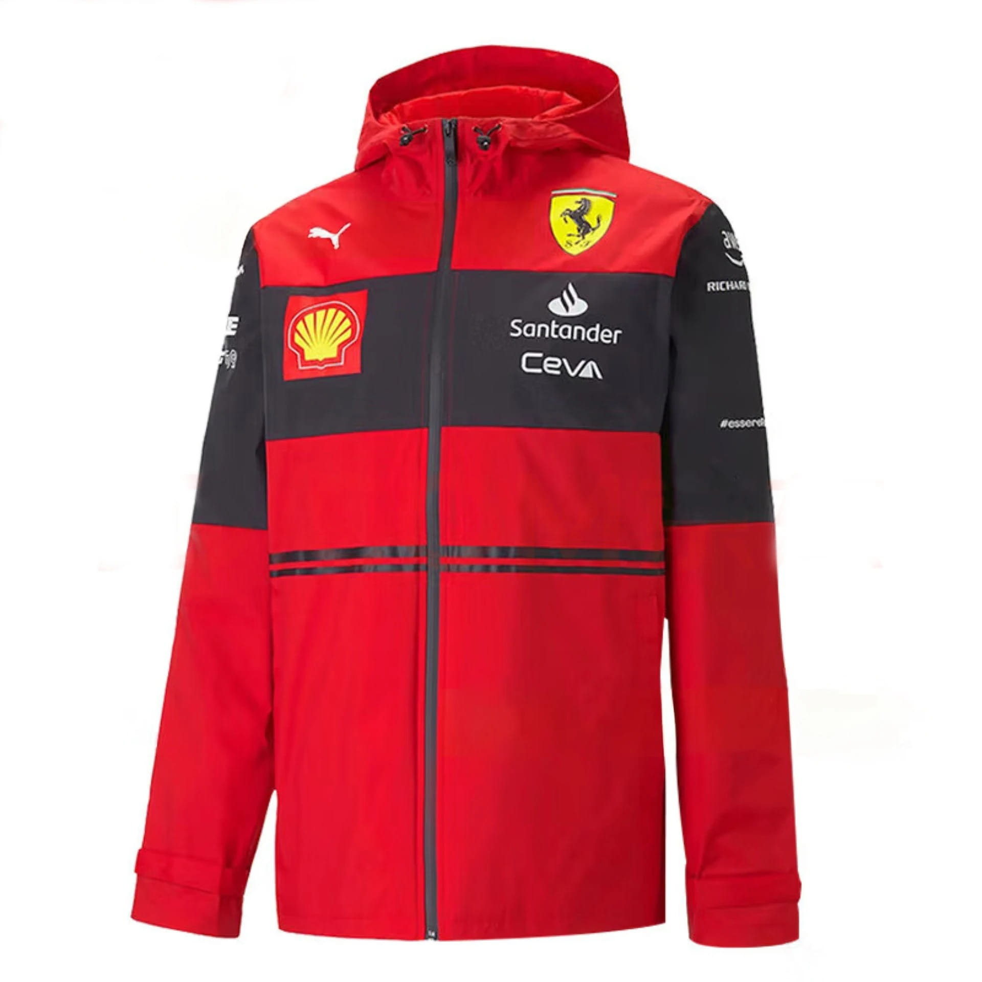 Poczuj się jak członek ekipy Scuderia Ferrari dzięki tej wysokiej jakości, męskiej kurtce z kapturem, idealnej na okres wiosenny i jesienny. Design kurtki jest inspirowany oficjalną odzieżą zespołową Ferrari F1 Teamwear, z dynamicznym połączeniem czerwieni i czerni oraz widocznymi logo sponsorów.