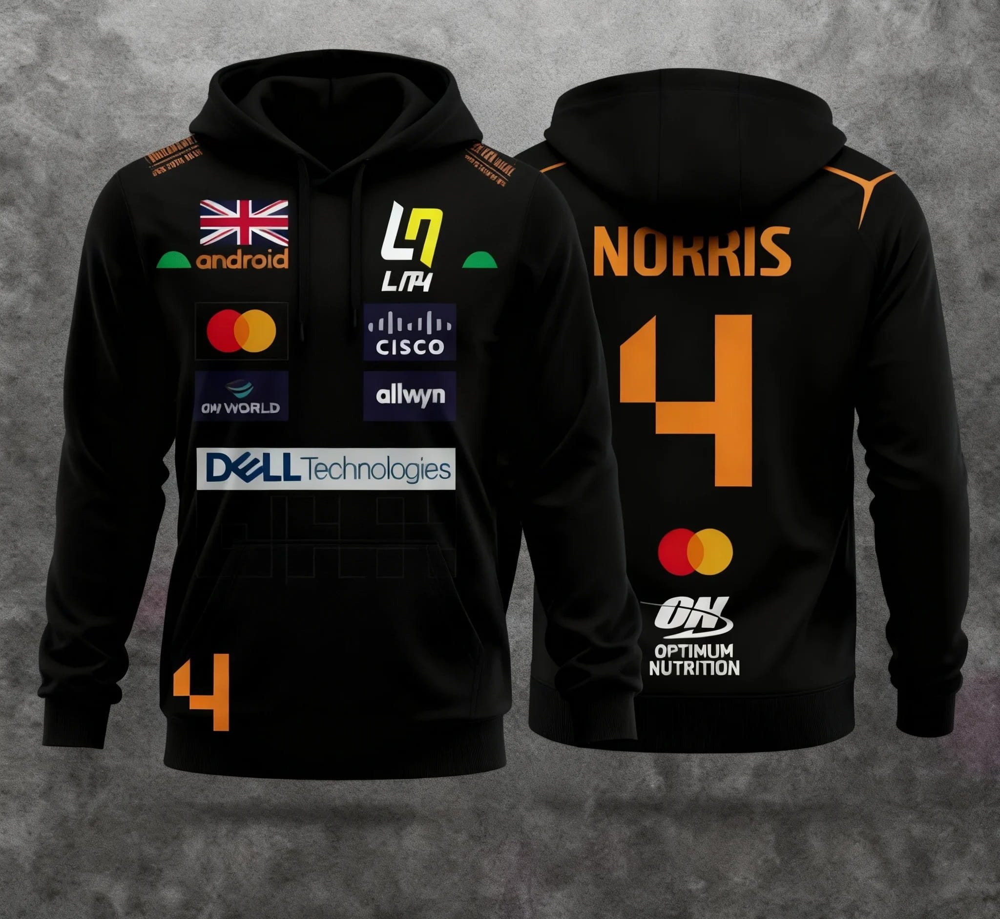 Męska bluza sportowa z kapturem Racing Lando Norris – bluza hoodie motorsport streetwear