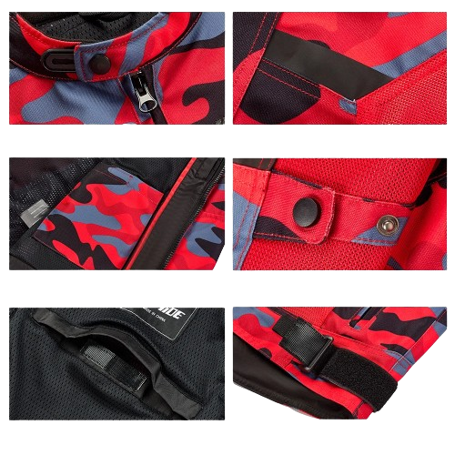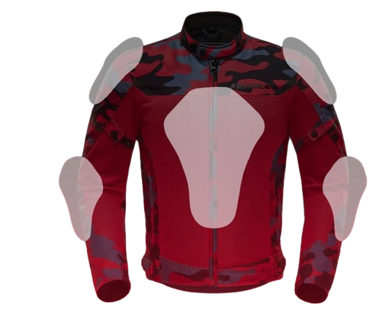 Męska kurtka motocyklowa w kolorze czerwonym ze zdobieniami