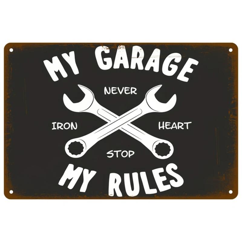Metalowa Tabliczka Retro – My Garage My Rules – Szyld Garażowy 20x30cm