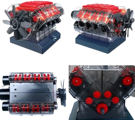 Model do samodzielnego złożenia to szczegółowa replika silnika V8, wykonana z wysokiej jakości materiałów. Zestaw zawiera precyzyjnie zaprojektowane elementy, umożliwiające realistyczne odwzorowanie mechaniki silnika, idealny dla pasjonatów motoryzacji i modelarstwa.
