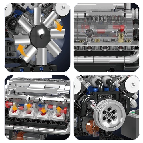 Model do samodzielnego złożenia to szczegółowa replika silnika V8, wykonana z wysokiej jakości materiałów. Zestaw zawiera precyzyjnie zaprojektowane elementy, umożliwiające realistyczne odwzorowanie mechaniki silnika, idealny dla pasjonatów motoryzacji.