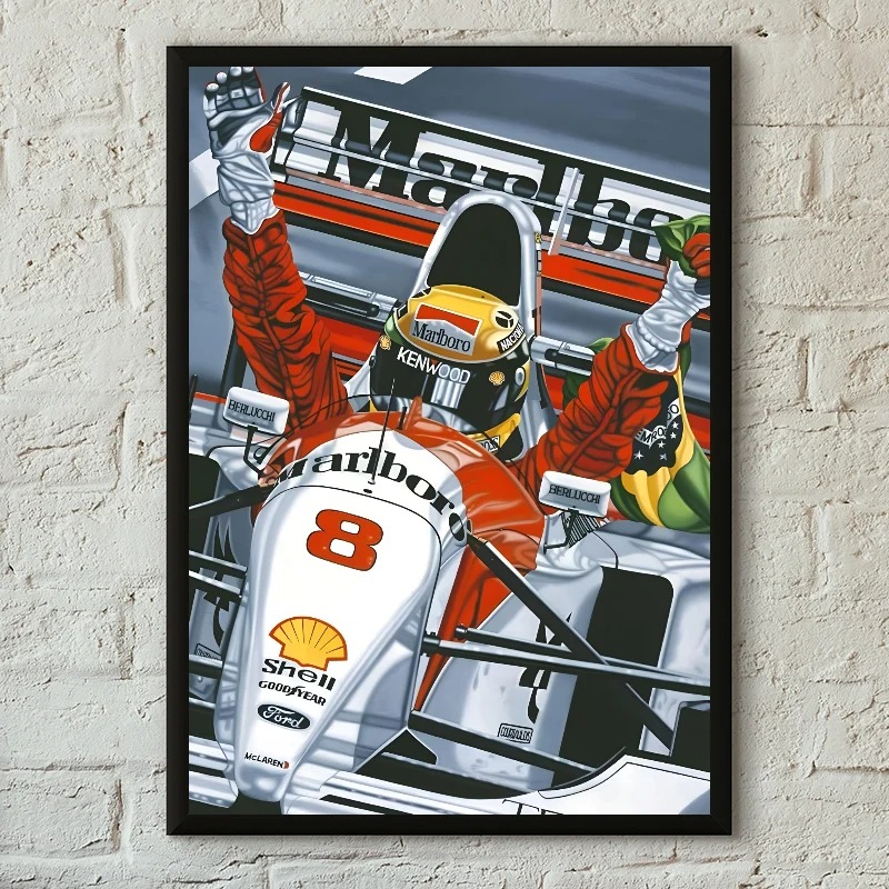Wprowadź do swojego wnętrza ducha rywalizacji i niesamowitą historię jednego z najwybitniejszych kierowców wszech czasów. Ten plakat to hołd dla Ayrtona Senny, brazylijskiej ikony Formuły 1, której pasja i determinacja na zawsze zmieniły świat motorsportu.