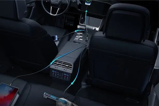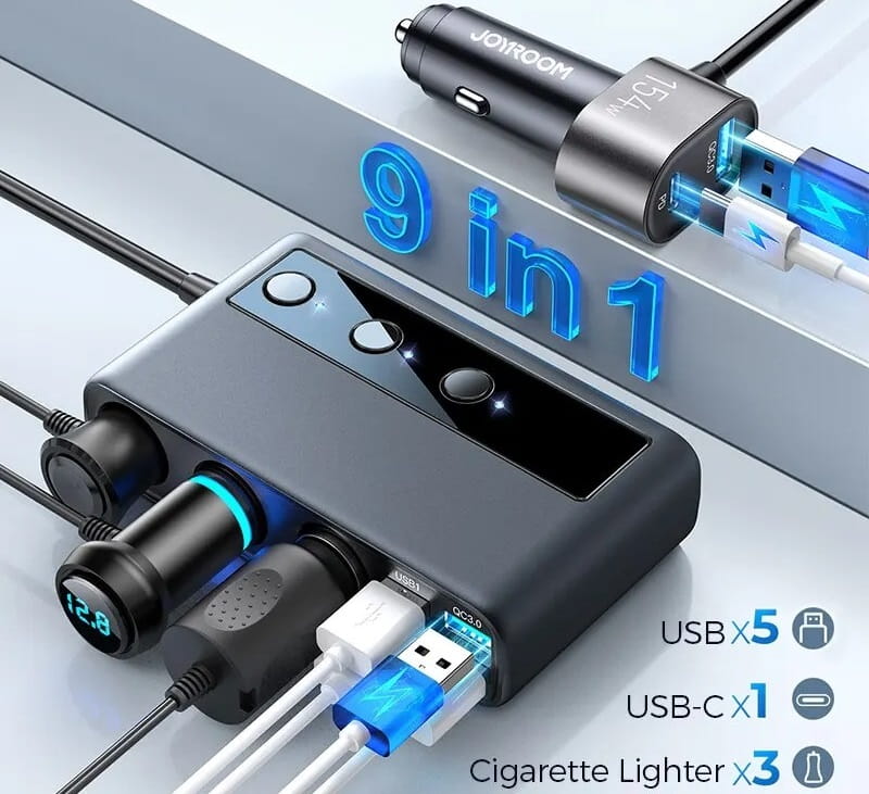 Niezbędny w podróży i w każdym aucie.  Posiada aż 9 portów - widoczne na zdjęciach.