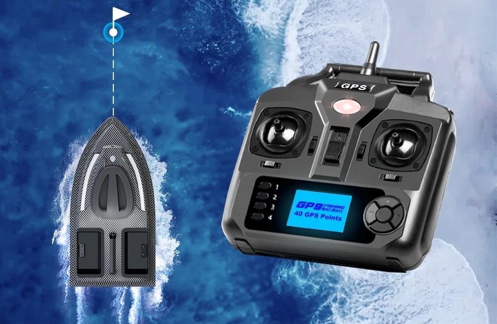 Automatyczny powrót: Odległość zdalnego sterowania mieści się w granicach 500 metrów. Gdy łódź ma niski poziom naładowania baterii, traci sygnał lub przekroczy 500 metrów włączy się automatyczny powrót.