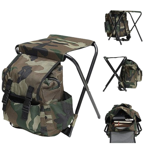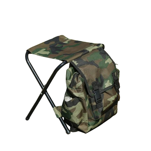 Wielofunkcyjny plecak do wędkowania w kolorze moro z krzesłem w zestawie
