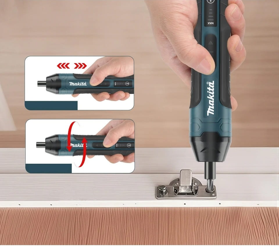Tryb manualny: Gdy potrzebujesz większej kontroli lub siły, użyj trybu ręcznego, obracając wkrętarkę jak tradycyjny śrubokręt.