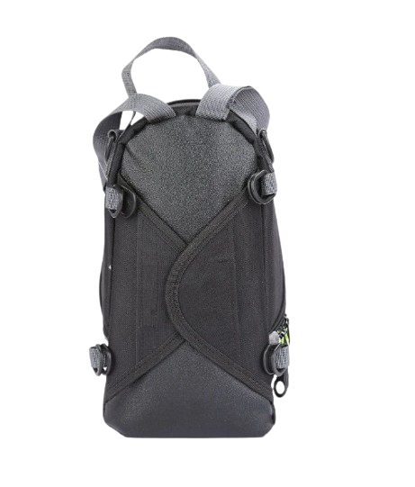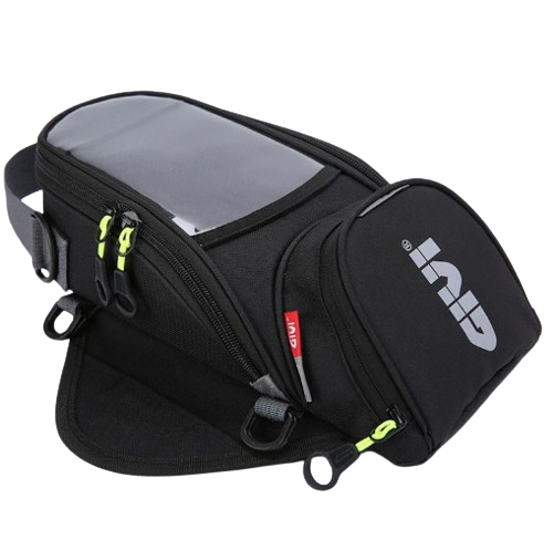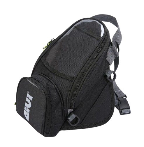 Wodoodporna torba motocyklowa w kolorze czarnym, odporna na warunki atmosferyczne, wykonana z wytrzymałego materiału. Mocowana do zbiornika motocykla za pomocą gumowych pasków. Zapewnia bezpieczne przechowywanie drobnych przedmiotów podczas jazdy na motocyklu. Torba dodatkowo posiada karabinek do przymocowania kluczy.