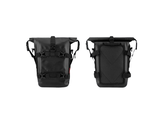 Wodoodporna torba modułowa podwieszana do motocykla koloru czarnego zapewnia maksymalną ochronę przed warunkami atmosferycznymi. Wyposażona w wygodny system mocowania, pojemne komory oraz dodatkowe kieszenie na drobiazgi. Niezastąpiona dla pasjonatów motocykli podróżujących w każdych warunkach.