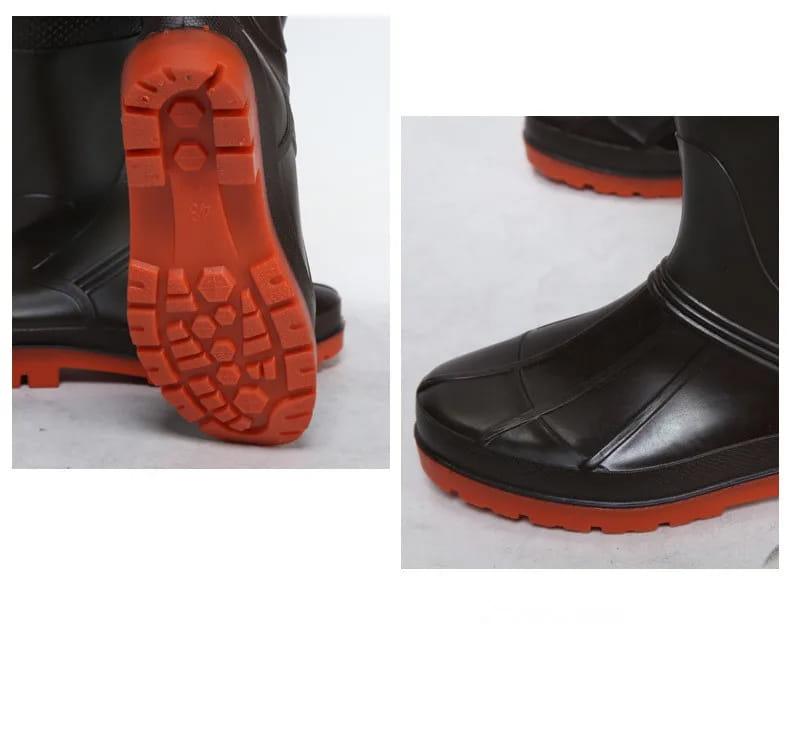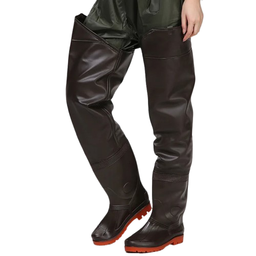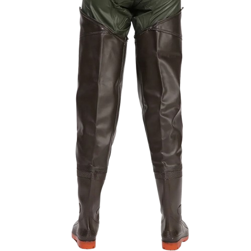 Wodoodporne spodnie wędkarskie w kolorze czarnym łączą funkcjonalność z wygodą. Wyposażone w antypoślizgową podeszwę, zapewniają stabilność na mokrej nawierzchni. Idealne na każdą wyprawę, chronią przed deszczem i błotem, gwarantując komfort i swobodę ruchów.
