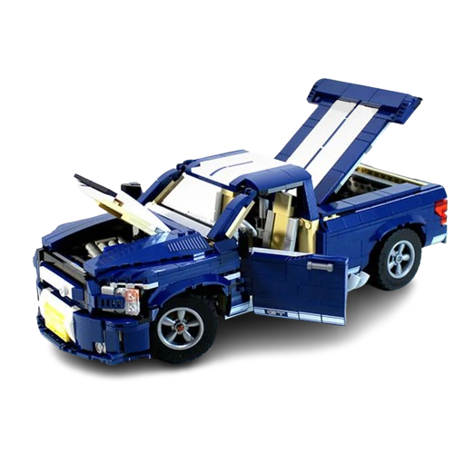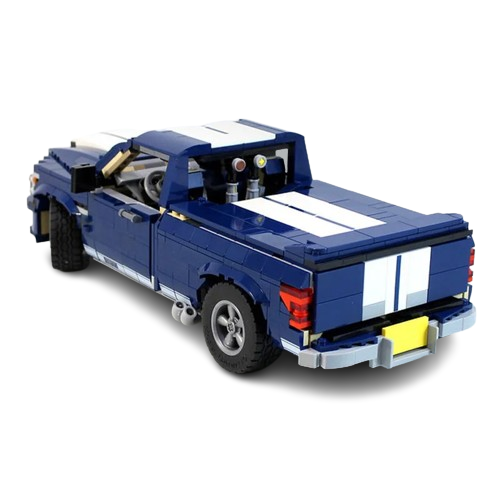 Zestaw klocków pozwala na zbudowanie szczegółowej repliki Forda F-150 Super Snake, potężnego pickupa słynącego z imponujących osiągów.