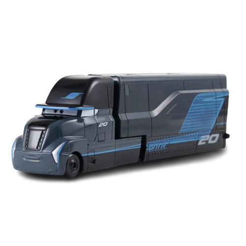 Czarna ciężarówka z numerem 20, inspirowana filmem "Auta", to idealna zabawka dla małych fanów motoryzacji. Wykonana z trwałego materiału, posiada ruchome elementy, realistyczny design oraz przyciągające uwagę kolory, które rozweselają każde dziecko.