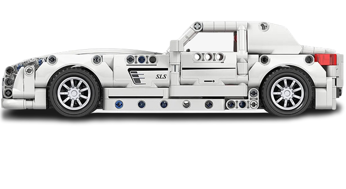 Zestaw Klocków samochód Mercedes SLS zawiera 399 elementów, które pozwalają zbudować realistyczną replikę tego kultowego auta. W zestawie znajdują się różnorodne elementy, takie jak klocki, koła. Klocki są wykonane z wysokiej jakości tworzywa, co gwarantuje trwałość i solidność konstrukcji.