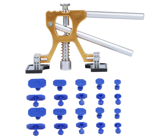 Zestaw do wyciągania wgnieceń z karoserii samochodu to specjalne narzędzie pozwalające usunąć różnego rodzaju wgniecenia bez konieczności lakierowania. Składa się z przyssawek, specjalnego kleju i systemu napinającego, które umożliwiają precyzyjne i skuteczne usuwanie uszkodzeń na powierzchni samochodu.