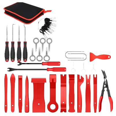 Narzędzia do demontażu tapicerki składają się z 41 elementów, w zestawie znajdują się m.in. śrubokręty, cążki i kilka rodzajów specjalistycznych haków. Zestaw umożliwia precyzyjne i szybki demontaż tapicerki z różnych elementów pojazdów, mebli czy innych powierzchni. Doskonały do profesjonalnych napraw tapicerki. Do zestawu dodatkowo dołączone jest kilka rodzajów spinek.