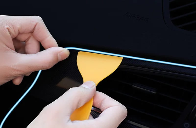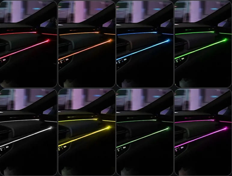 Zestaw oświetlenia do wnętrza samochodu to elastyczny pasek LED z adapterem USB, który pozwala na stworzenie nastrojowej atmosfery. Prosty w instalacji, oferuje różne kolory i efekty, idealny do personalizacji przestrzeni w pojeździe.