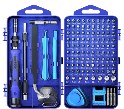 Zestaw precyzyjnych narzędzi składa się z 122 elementów, które zapewniają wysoką jakość i precyzję pracy. Zestaw zawiera pęsetę, klucz ze zmiennymi wkrętami oraz inne akcesoria niezbędne do wykonywania precyzyjnych napraw.