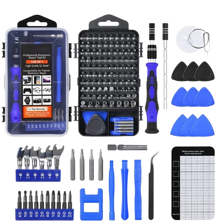 Zestaw precyzyjnych narzędzi składa się z 140 elementów, które zapewniają wysoką jakość i precyzję pracy. Zestaw zawiera pęsetę, klucz ze zmiennymi wkrętami oraz inne akcesoria niezbędne do wykonywania precyzyjnych napraw.